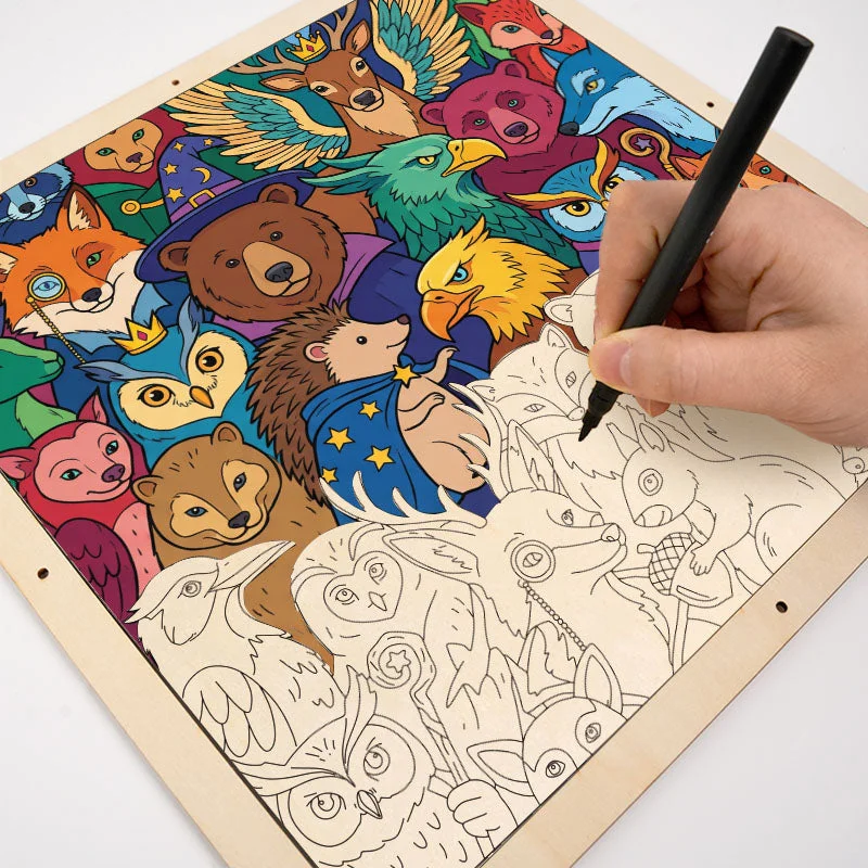 Amici della foresta incantata - Puzzle in legno da colorare