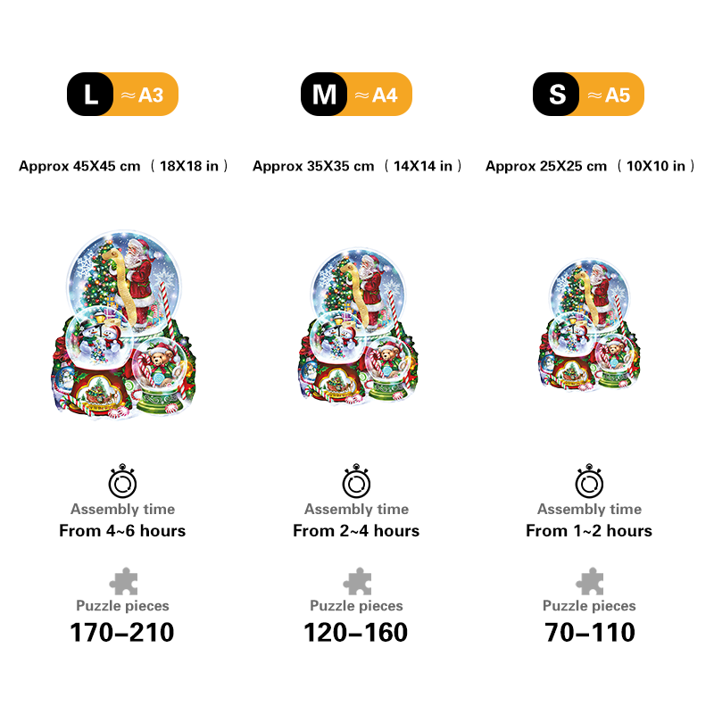 423.281px;">Circa 25x25 cm (10x10 pollici) - 70~110 pezzi, tempo di montaggio 1-2 ore.
