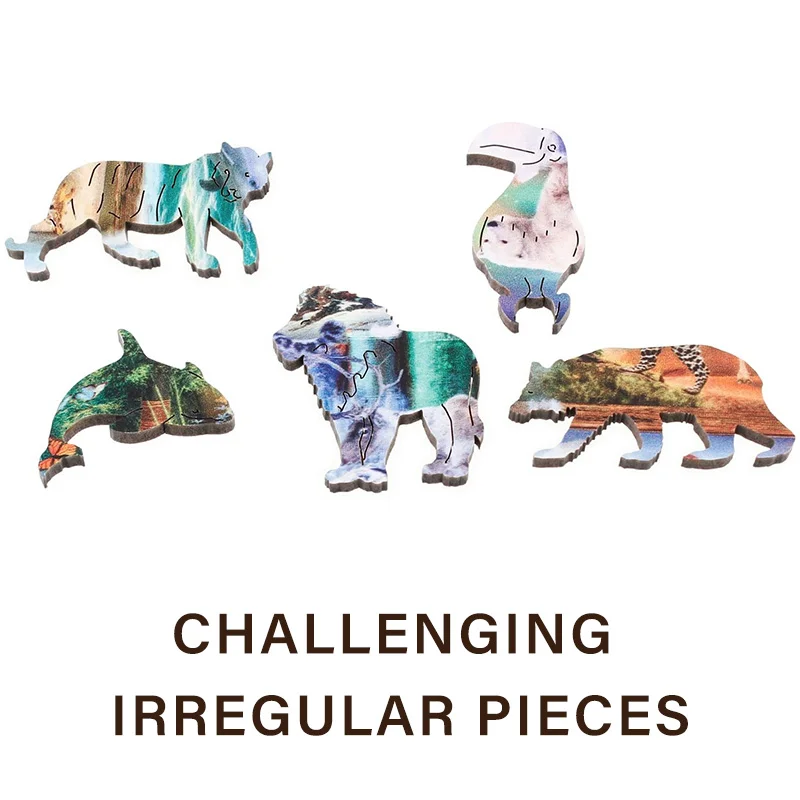 Puoi goderti questo momento rilassante con questo rompicapo a tema naturale. Esistono più dimensioni. Il nostro puzzle in legno è composto da piccoli pezzi a forma di animali e piante della savana.