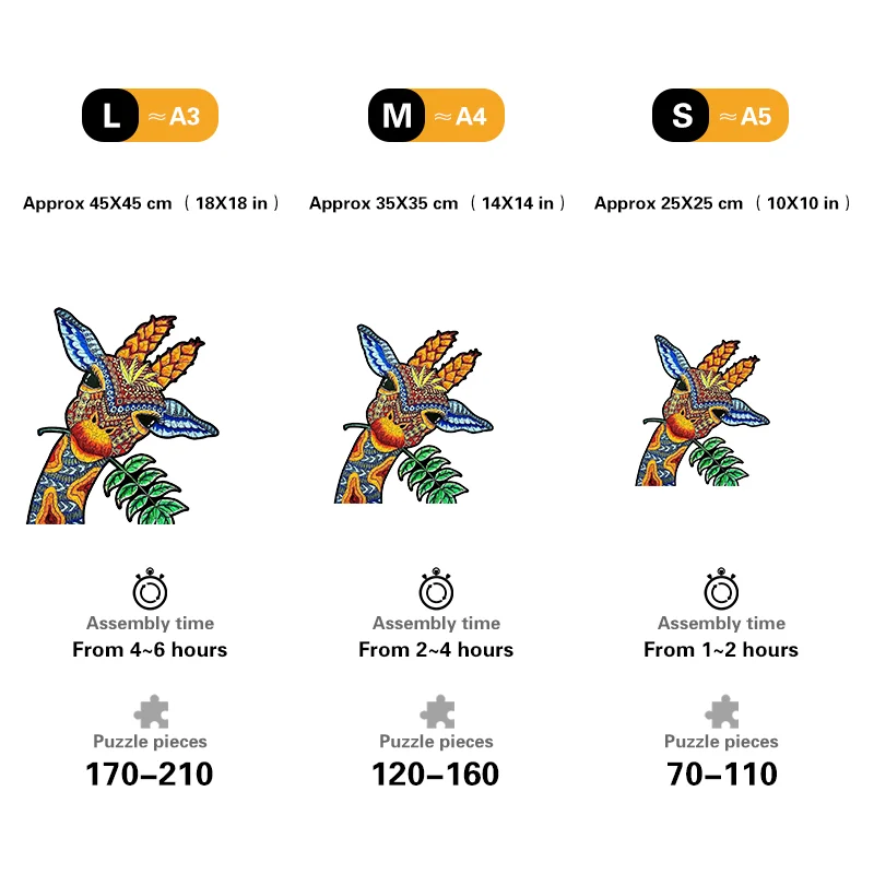 dimensione:L(A3) Circa 45x45 cm (18x18 pollici) - 170~210 pezzi, tempo di assemblaggio 4-6 ore.