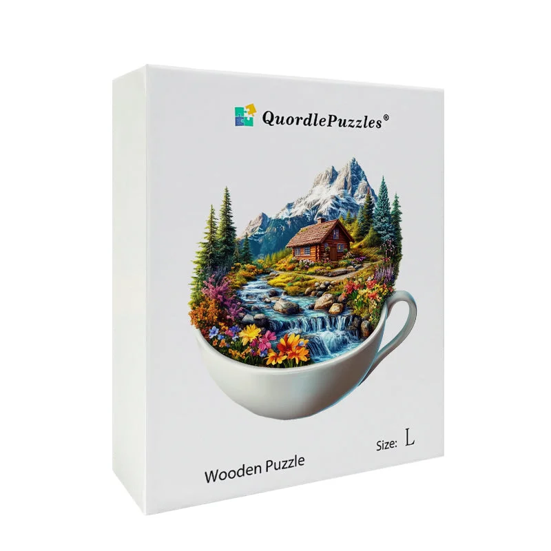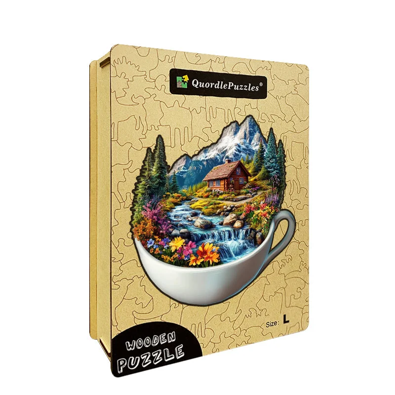 Puzzle in Legno Cottage di Montagna in una Tazza