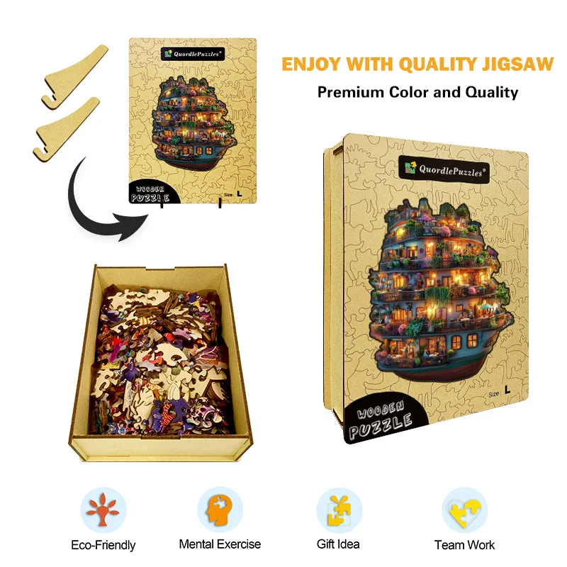Questo puzzle in legno è realizzato in materiale di tiglio privo di formaldeide, che presenta un trattamento superficiale liscio. Ed è di alta qualità, durevole e resistente alla corrosione. Dopo il trattamento di tintura ecologico è presente uno strato protettivo che può essere conservato per decenni, appeso al muro o utilizzato per scopi espositivi.