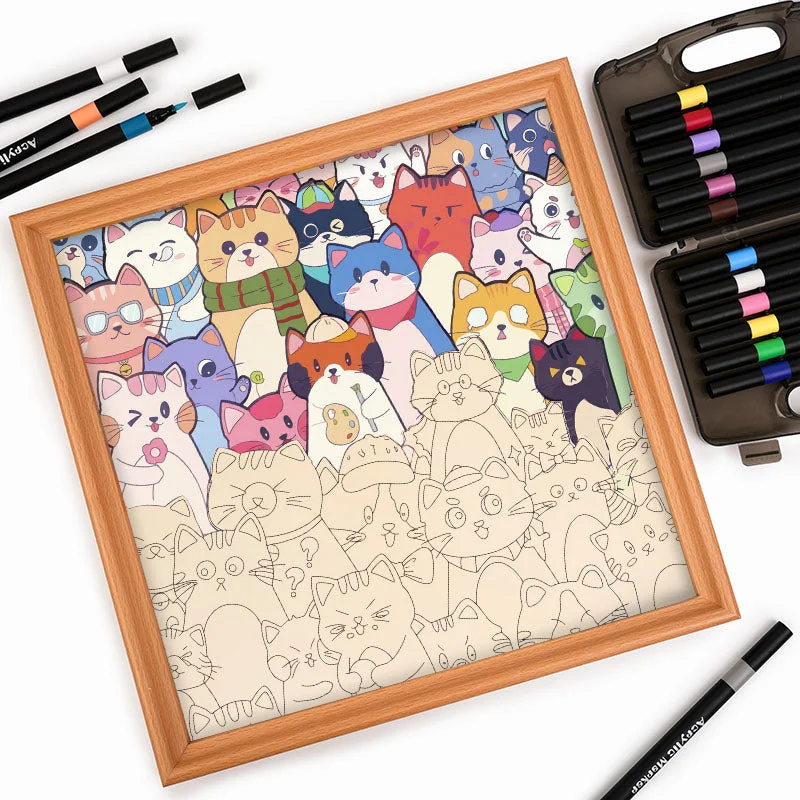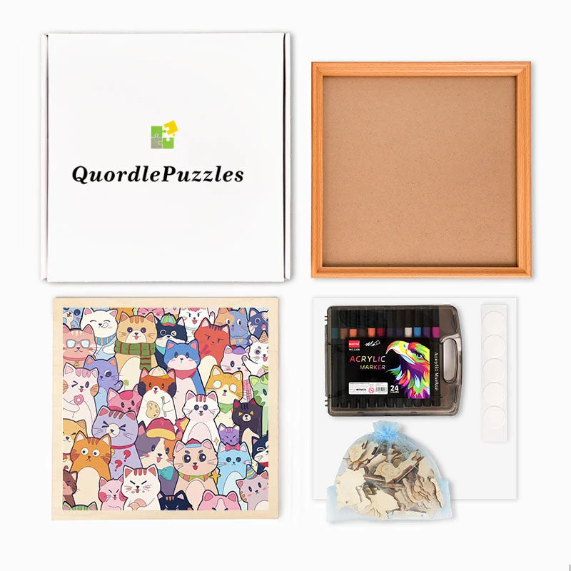 Gatti stravaganti - Puzzle in legno da colorare