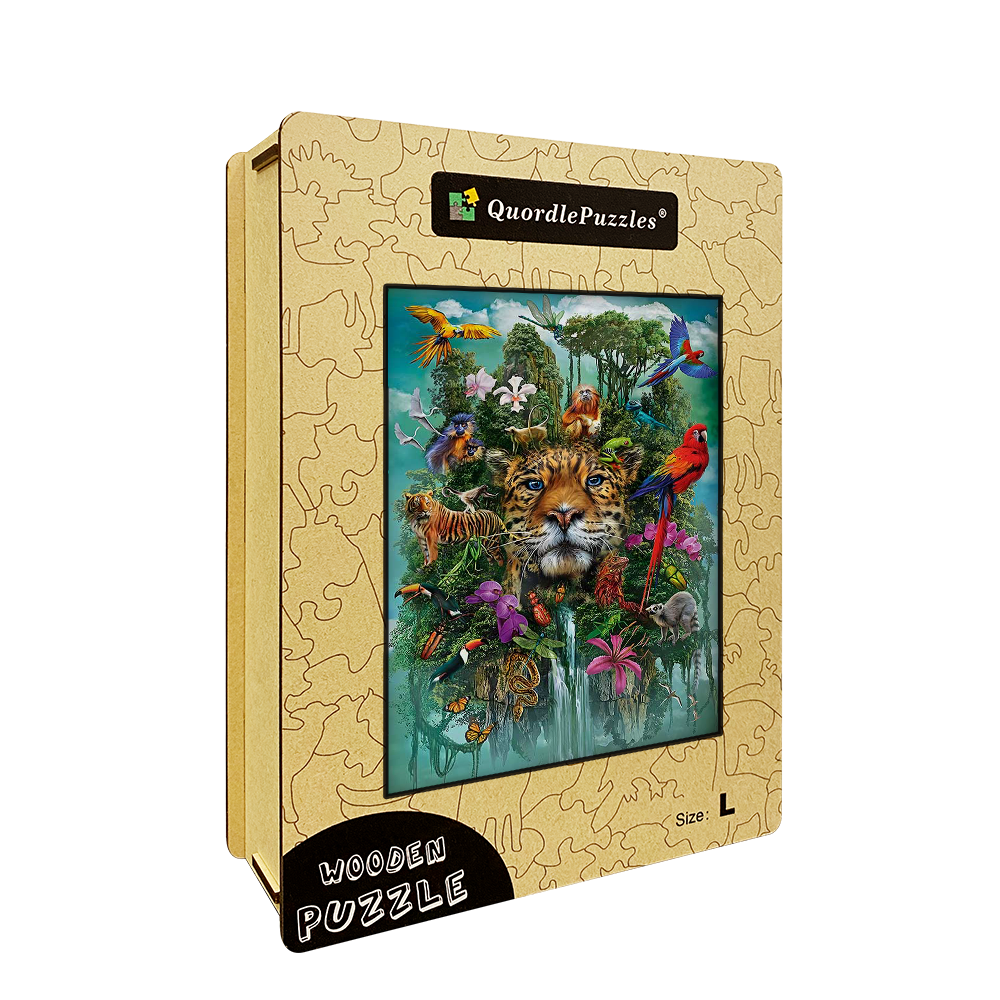 Puoi goderti questo momento rilassante con questo rompicapo a tema naturale. Esistono più dimensioni. Il nostro puzzle in legno è composto da piccoli pezzi a forma di animali e piante della savana.